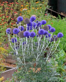 Многогодишно тревисто растение, устойчиво на засушавания и неблагоприятни атмосферни условия. Ехинопсът се развива добре на всякакви почви, но на богати и влажни почви се нуждае от дренаж. ECHINOPS Platinum Blue е хибрид с височина до 60 см, с брилянтни ярко сини цветове, цъфтеж от края на юни до септември. Ехинопсът е перфектното растение за комбинации в сухи градини с други многогодишни цветя- салвии, агастачета, маргаритки, ехинацеи, с декоративни треви.