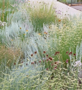Синьо-зелена нежна трева, родена в прериите на Северна Америка, макар да е с височина едва до 40 см, тя често се вкоренява до дълбочина от 2 метра, една от най-устойчивите на суша треви, ефективно използва и минимални количества влага, макар да се развива най-добре при равномерна постоянна влага.Прави компактна плътна розетка от тънки , но здрави листа, зацъфтява още в средата на лятото с интересни цветове, първоначално с лилаво-черен цвят, в последствие избеляват