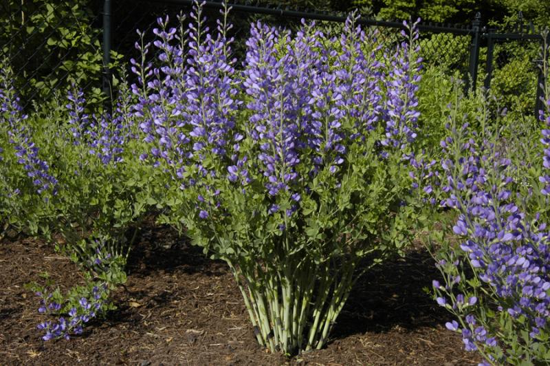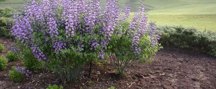 Баптизията е близък родственик на мимозата и акацията, произход прериите на северна Америка, напълно зимоустойчиво растение, непретенциозно , щом веднъж се установи. Образува красиви храсти до 1 м широчина след 2-3 години, височина до 1,30 м, цъфти през пролетта с внушителни сини цветове с дължина до 30 см. За слънце и полусянка, понася засушаване.