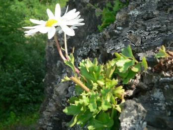 Една маргаритка от далечна Аляска, цъфти с големи бели цветове върху лъскава ниска здрава розетка. Изисква влажна почва, понася лека сянка. Красива розетка!