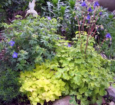 Много интересна кандилка! Този сорт се цени основно заради ярките си изпъстрени жълто-зелени листа, която я правят атрактивна през целия сезон! Компактна кандилка, с хубаво оформено храстче, цъфти напролет с лилави цветове, след подрязване много бързо изкарва нови листа в изумрудено зелено с жълти шарки. Ценен сорт.