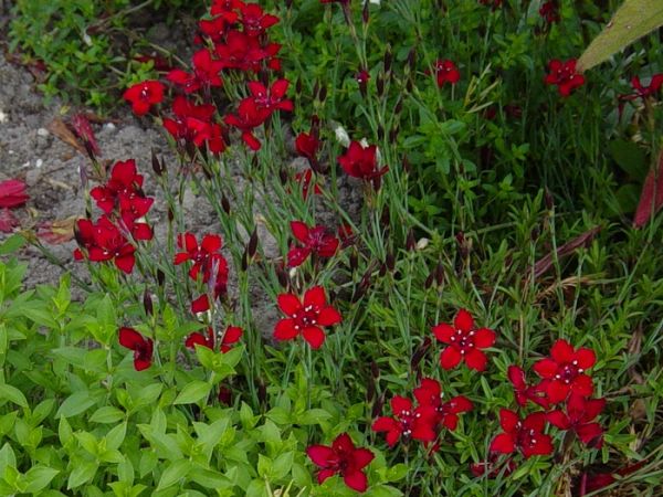 Почвопокривно карамфилче , с плътни вечнозелени туфи , височина в цъфтеж 20 см .Непретенциозно.