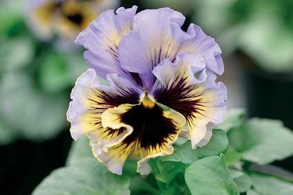 Ефектна едроцветна теменужка с накъдрени краища и преливащи цветове, подходяща за предзимно и пролетно разсаждане.