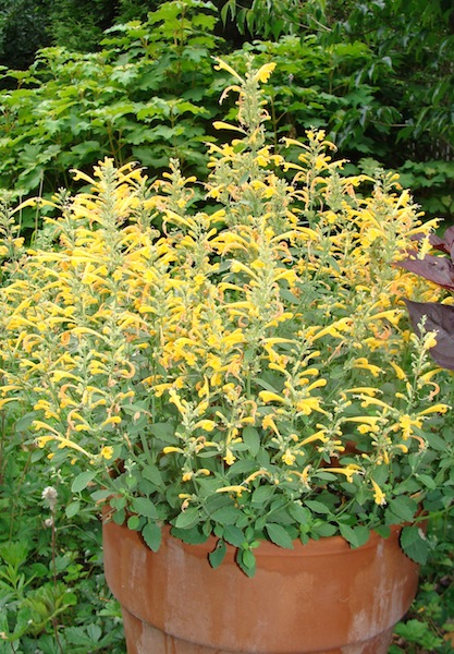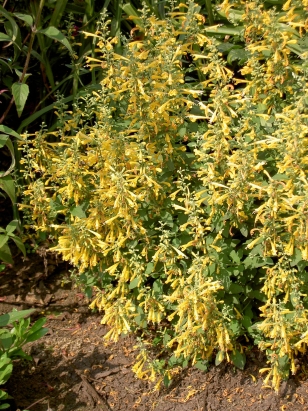 Agastache aurantiaca sunset yellow е съвсем нов сорт , отличаващ се със своята компактност и с ниска височина за разлика от повечето видове агастахета, не поляга! Височина до 45 см, разпростира се до 30 см. Цъфтежът започва рано-още вкрая на май, началото на юни, продължава до края на есента. Невзискателно многогодишно растение за слънце, образува компактен стегнат храст, цъфти с млечно жълти цветове, привлича пеперуди и пчели, идеално за комбинации с други многогодишни цветя и декоративни треви в градини с оскъдно поливане.