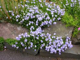 Изключително нежна кампанула с дребни цветчета, но с обилен цъфтеж, прави малки облачета цвят в средата на лятото, красива почвопокривна листна маса