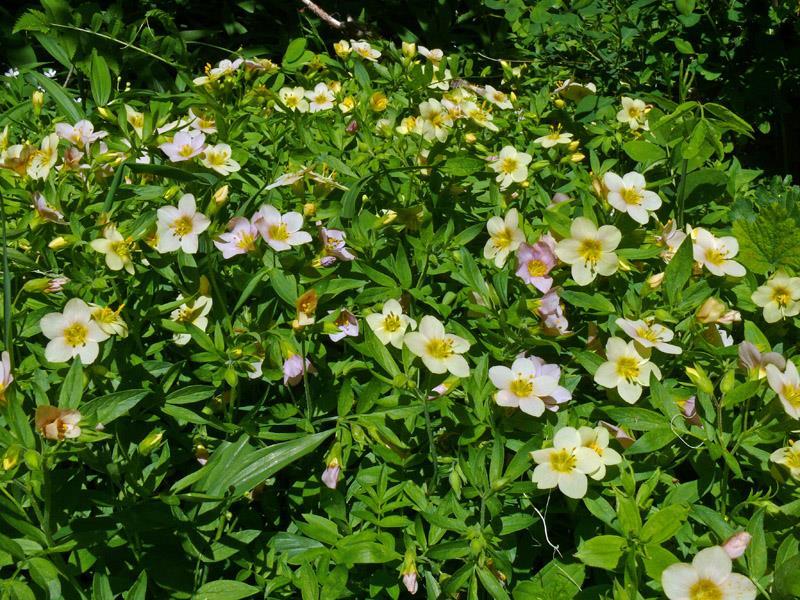 Растение, родено в северозападната САЩ, където расте в равнинните и гористи влажни местности, обича сянка и полусянка и влажна почва.Интересни са цветовете му- на слънце са розови, на сянка или в облачни дни преминават в цвят сьомга към кайсия. Височина 40 см, цъфтеж: май-юли, повторно в края на лятото след отрязване на прецъфтелите цветоноси.